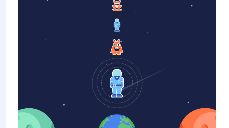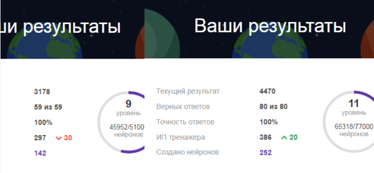 На этом тренажере нужно, как можно точно и быстро сортировать жителей вселенной по родным планетам. Если на начальном этапе удачей было то, что на землю отправлен один космонавт, то теперь, сортируя с каждым днем жителей вселенной и приобретая скоростной навык, я уже могу отправить два, а то и три космонавта, если повезет, четыре.